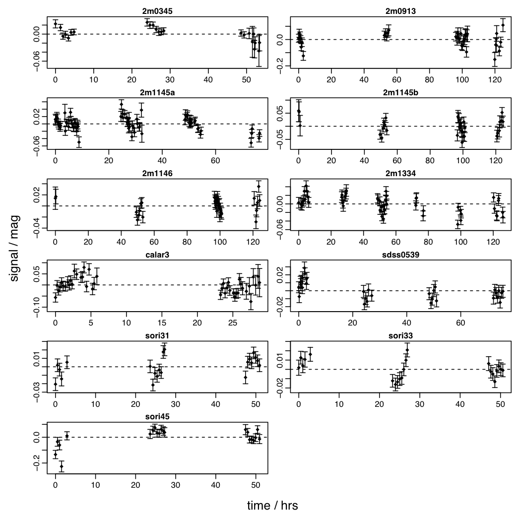 | Figure 1: Brown dwarf light curves (I-band), showing the variation in intrinsic brightness over time on a relative scale |